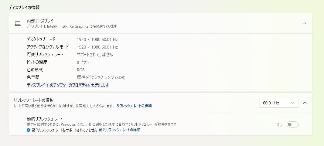 ・ディスプレイ:16.1インチ(1,920 × 1,080)