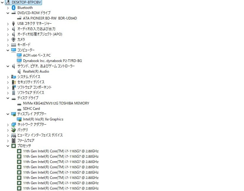 ・CPU:Intel Core i7-1165G7 2.80GHz(2.80GHz)