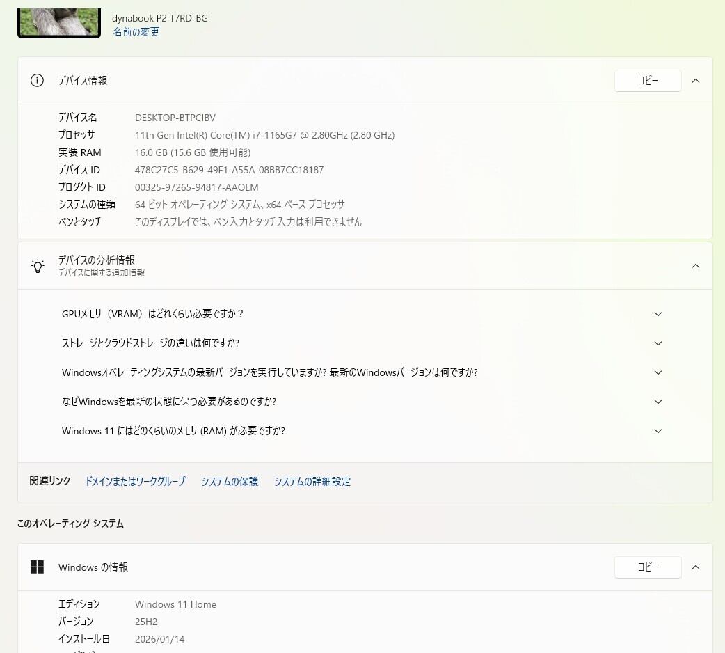 ・OS:Windows11 Home/25H2(ライセンス認証・Windows update済)