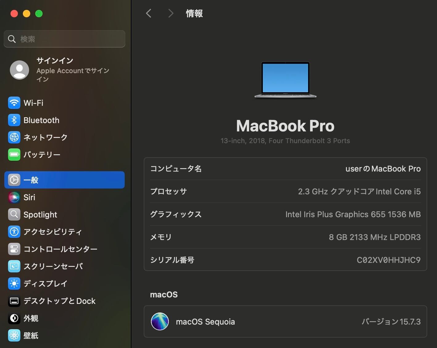 MacBook Pro(13インチ,2018,Thundeabolt 3ポート x 4)512GB/8GB〈MR9R2J/A〉④