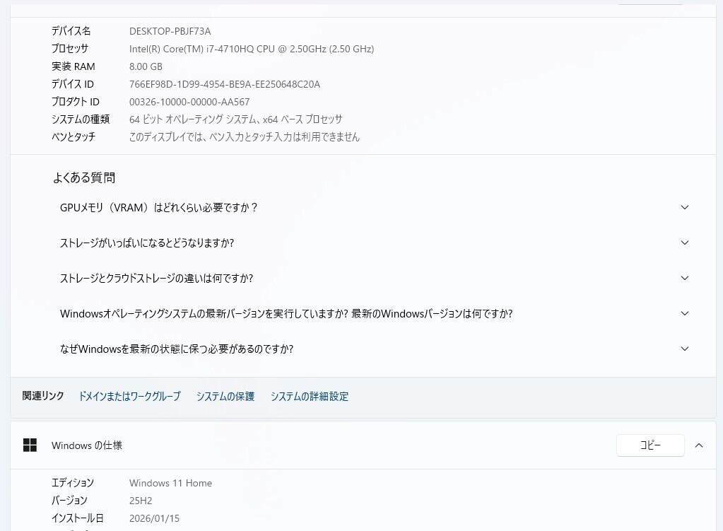 ・OS:Windows11 Home/25H2(ライセンス認証・Windows update済)
