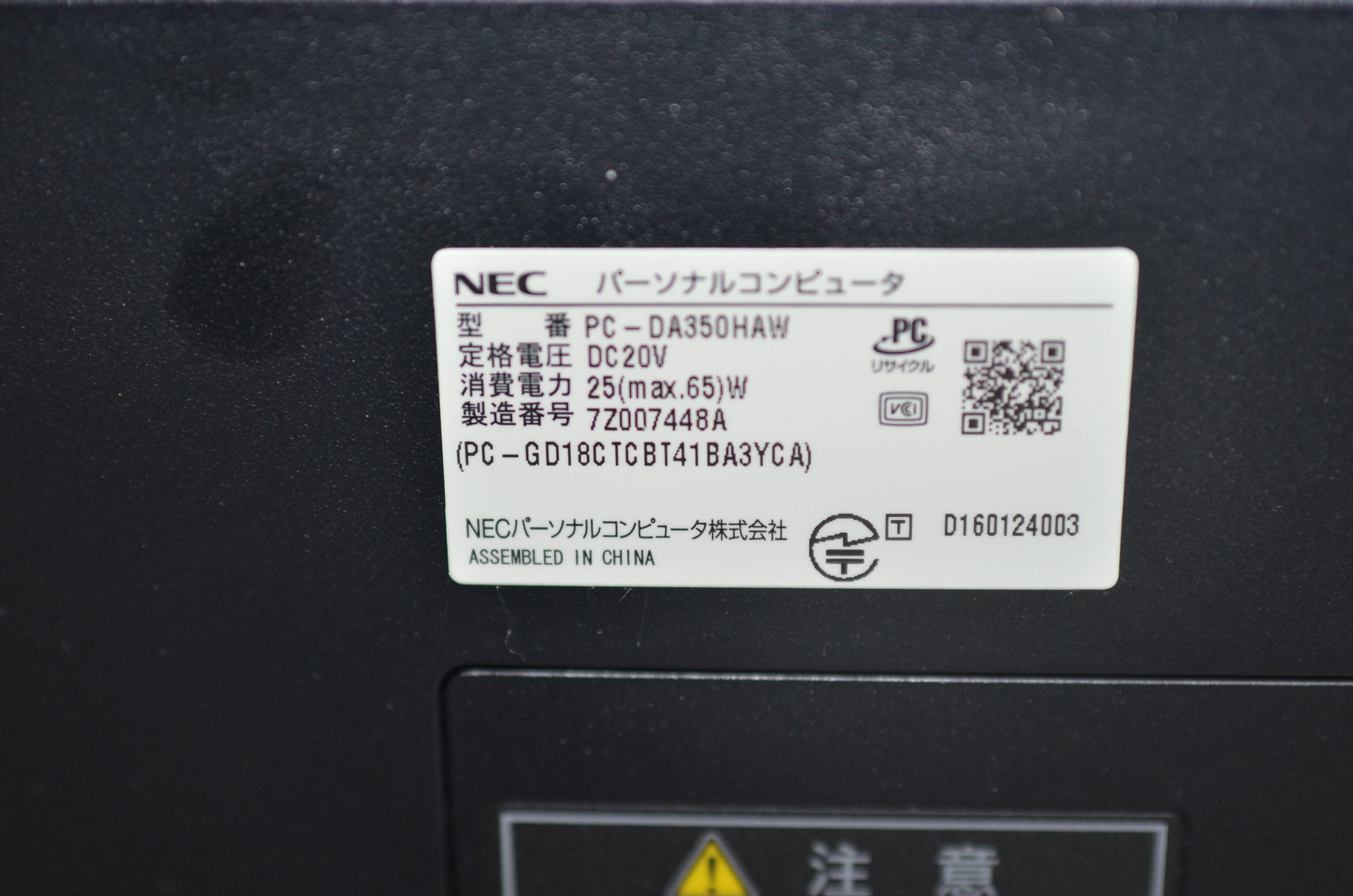 中古良品一体型パソコン NEC DA350/H Windows11+office Celeron-3865U/爆速SSD256GB/メモリ8GB/23.8インチ/無線内蔵/DVDマルチ搭載