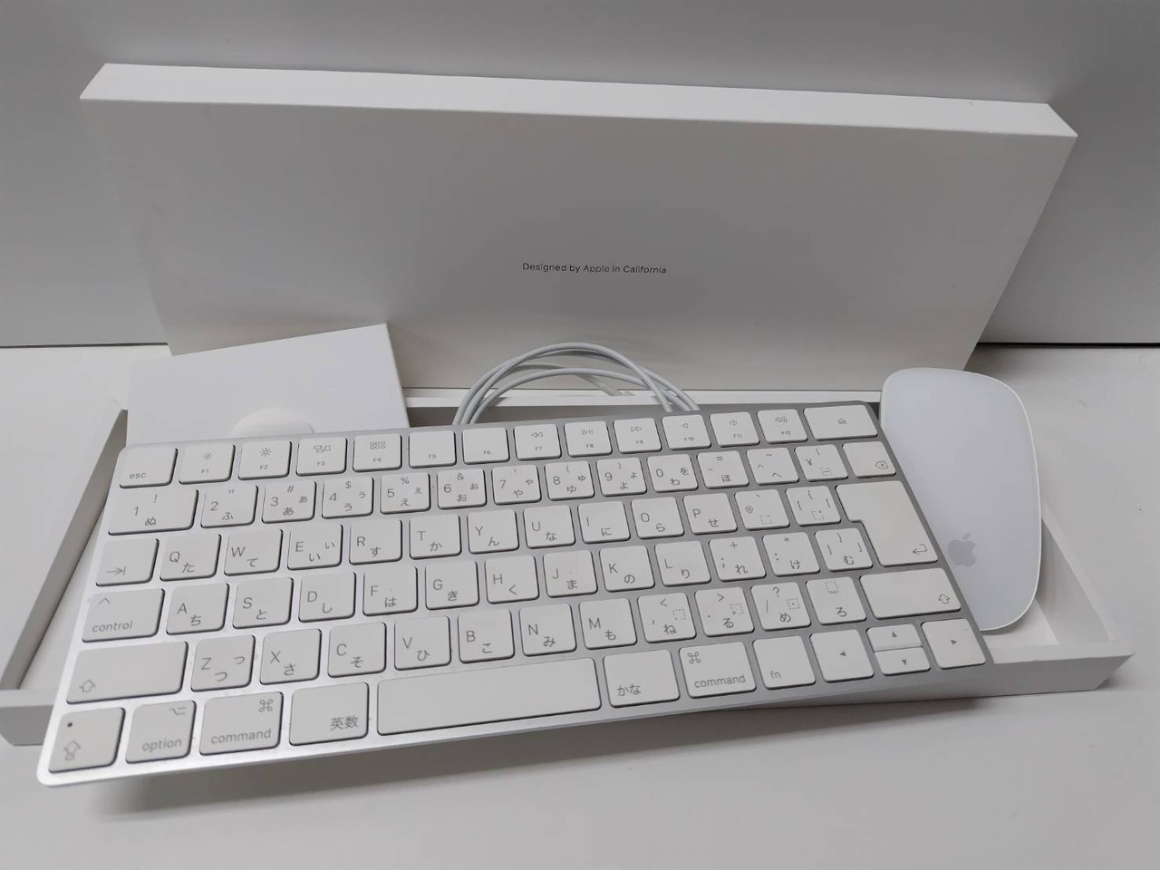 キーボード、マウス、Lightningケーブル、クリーナー、印刷物(画像1枚目に写っているもの)