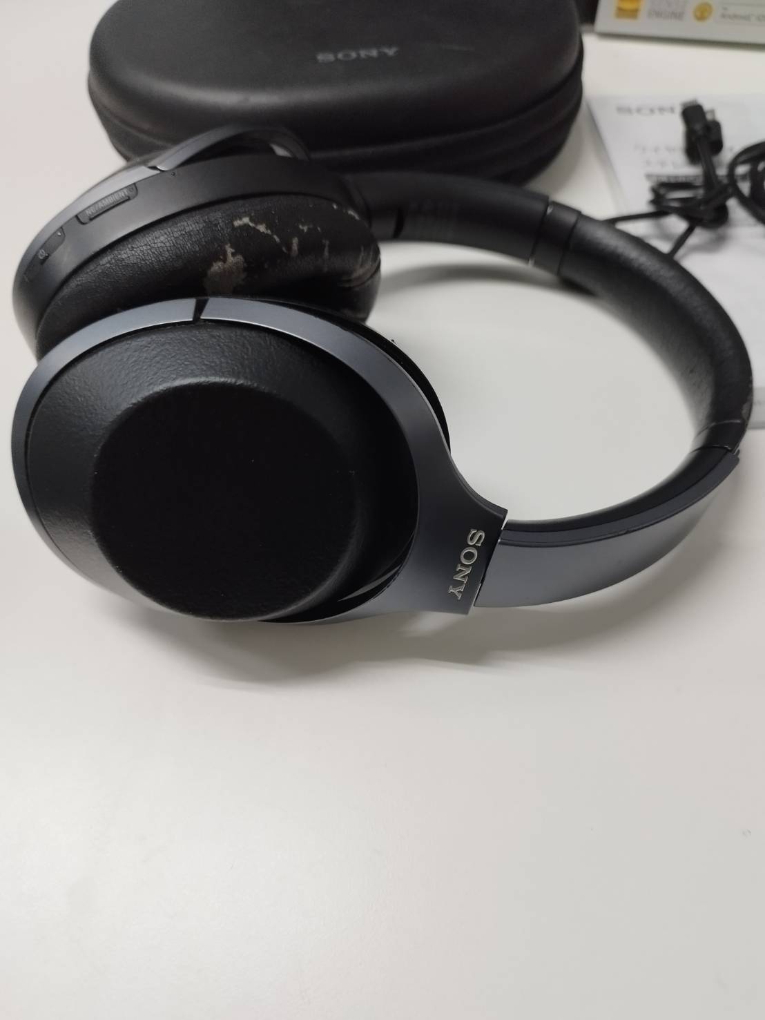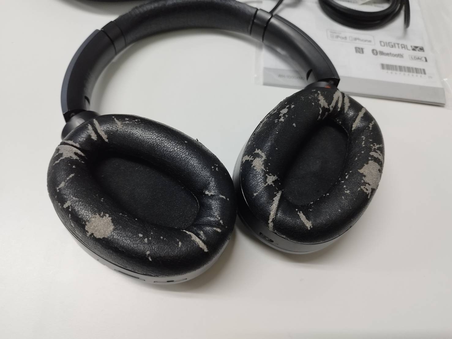 ヘッドバンドの表面に塗装剥がれ、イヤーパッドの表面の生地も一部剥げがあります。