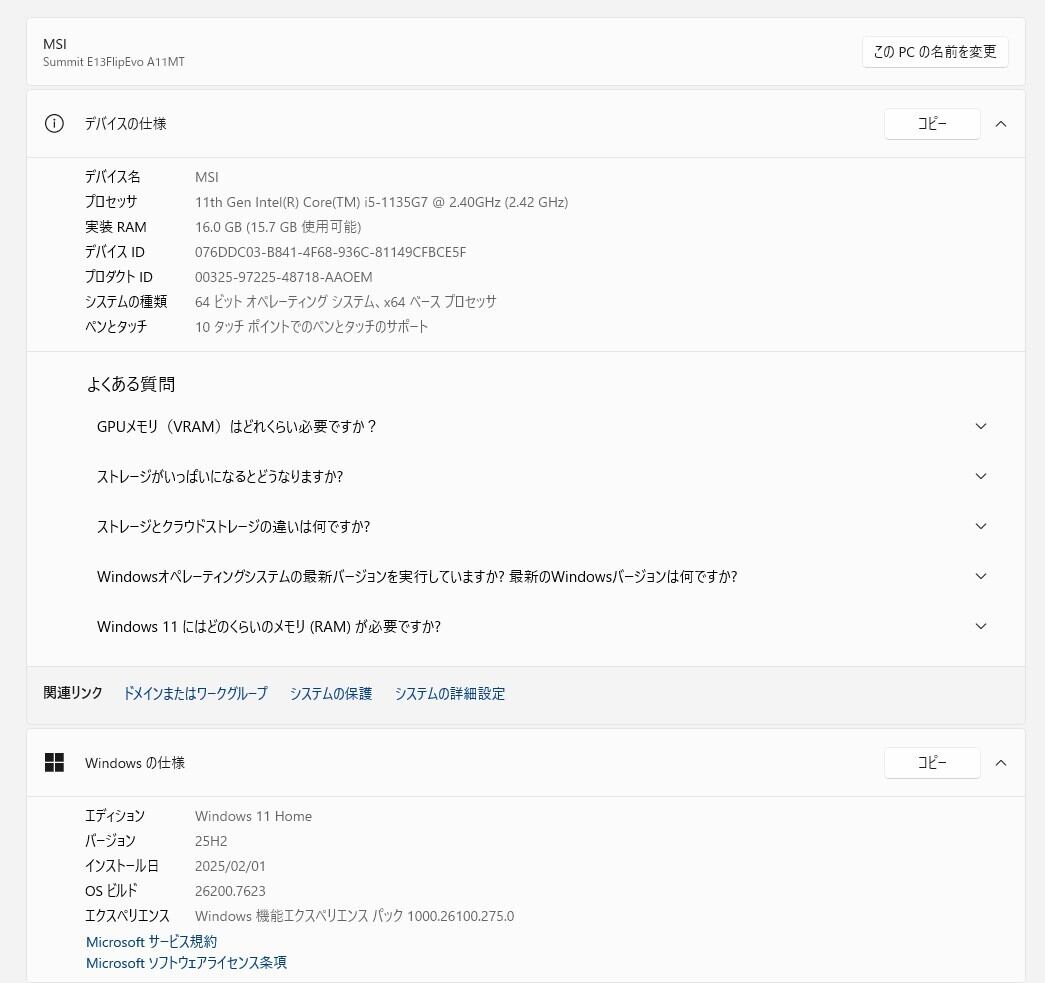 ・OS:Windows11 Home/25H2(ライセンス認証・Windows update済)