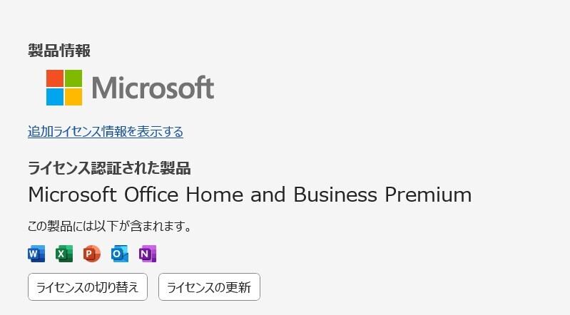 ・Office Home and Business Premium ライセンス認証済み(プロダクトキーなどは付属しません)