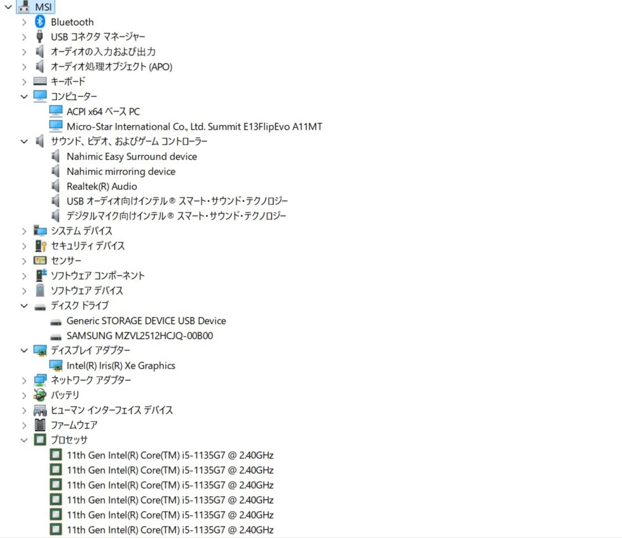 【中古ノートPC】MSI〈Summit-E13FlipEvo-A11MT〉Intel Core i5/SSD512GB/メモリ16GB ⑥