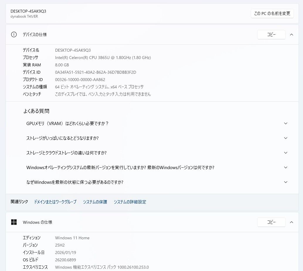 ・OS:Windows11 Home/25H2(ライセンス認証・Windows update済)