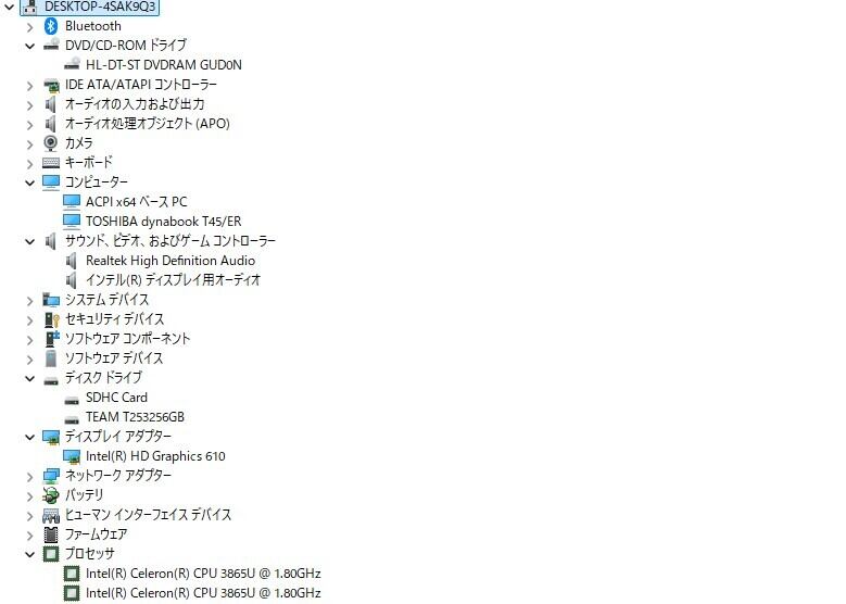 ・CPU:Intel celeron 3865U 1.80Ghz(1.80GHz)