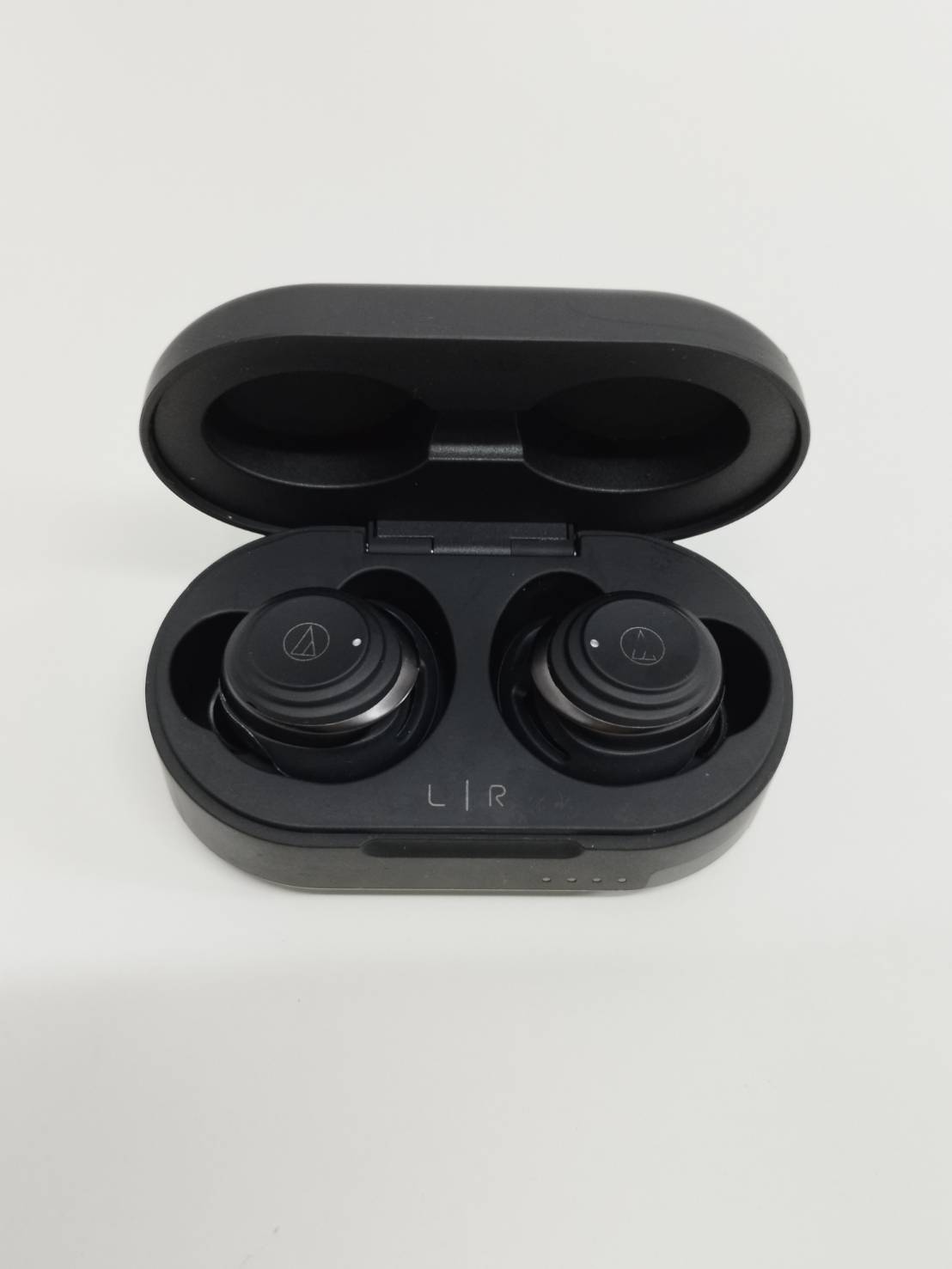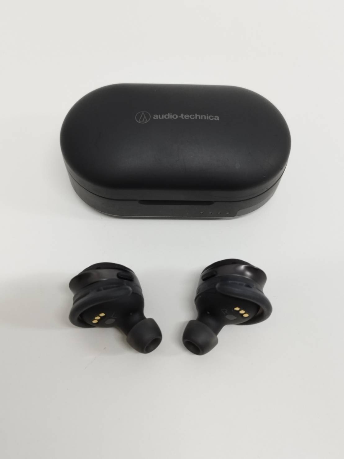 充電ケースはややスレ、蓋の右下付近に目立たない程度の小さい傷があります。