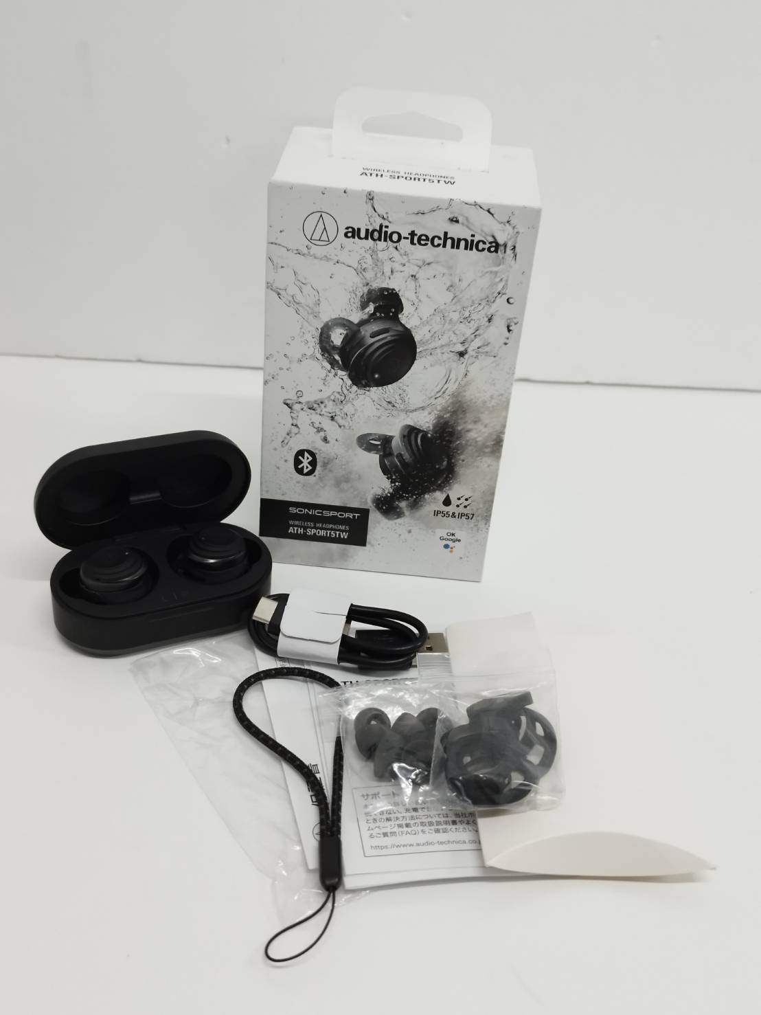 【良品】audio-technica SONICSPORT/ATH-SPORT5TW/ワイヤレスイヤホン/ブラック