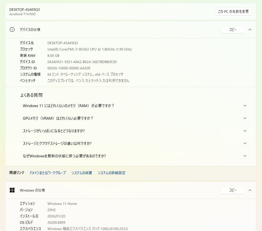 ・OS:Windows11 Home/25H2(ライセンス認証・Windows update済)