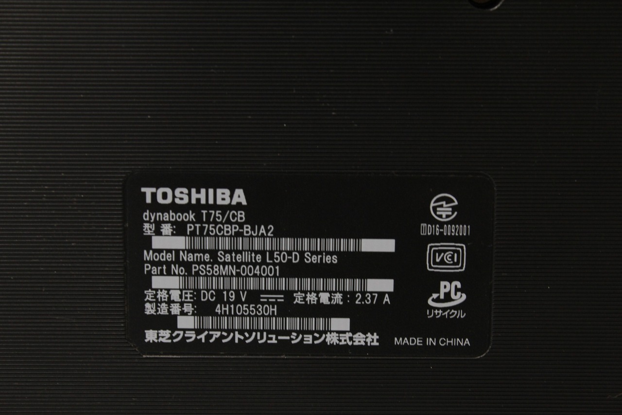 【中古ノートPC】東芝〈dynabook T75/CB〉Intel core i7/SSD256GB/メモリ8GB ⑤
