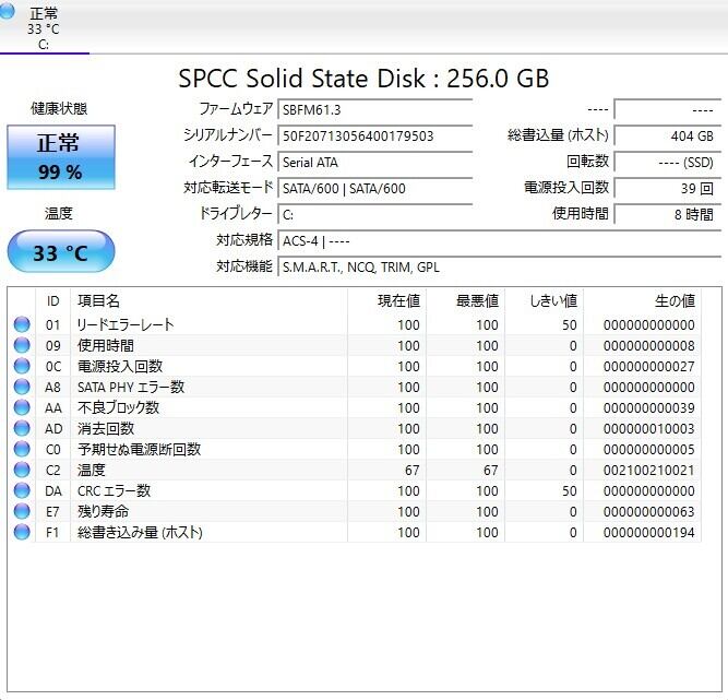 ・ストレージ:SSD 256GB