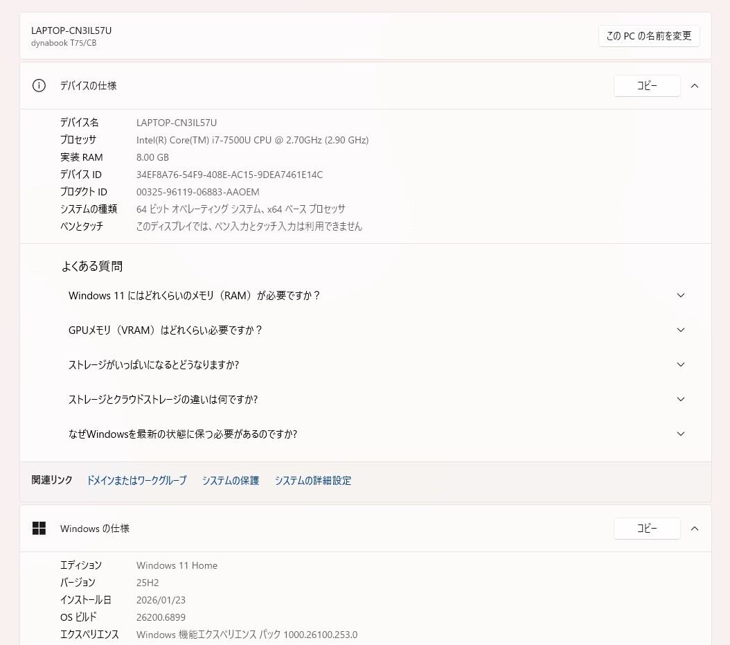 ・OS:Windows11 Home/25H2(ライセンス認証・Windows update済)