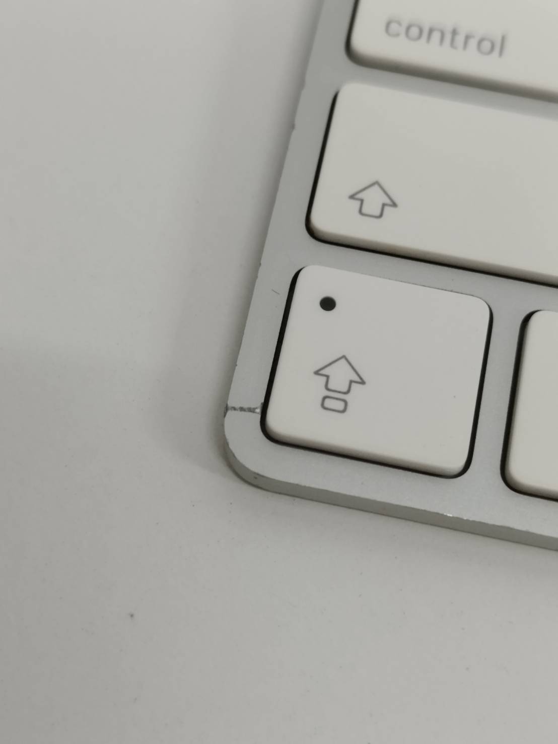 裏面にスレや細い擦り傷、複数のキーにテカリ、左下角付近に小さい傷があります。