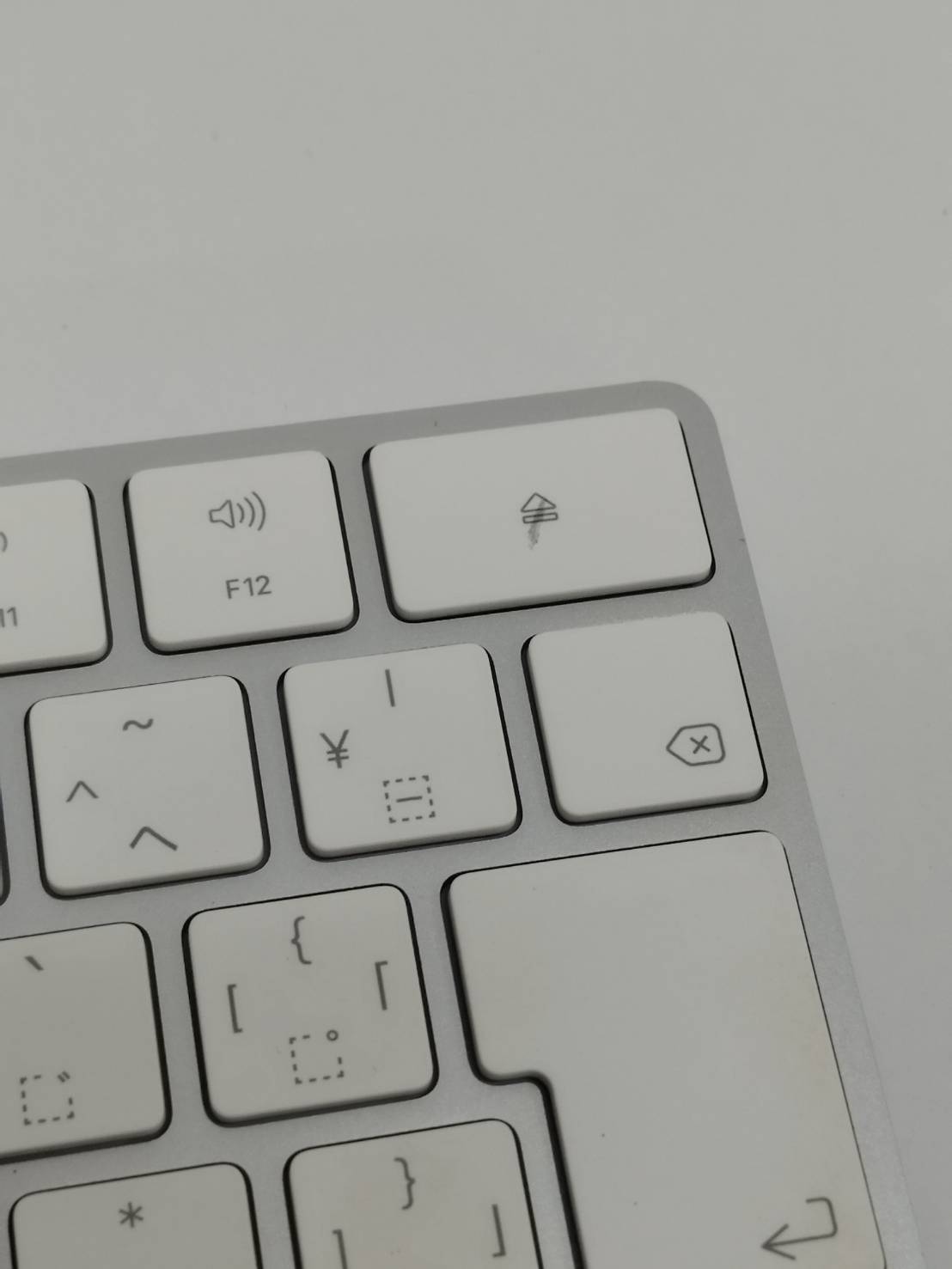 裏面にスレや細い擦り傷、表面右上角のキーに薄黒い汚れがあります。