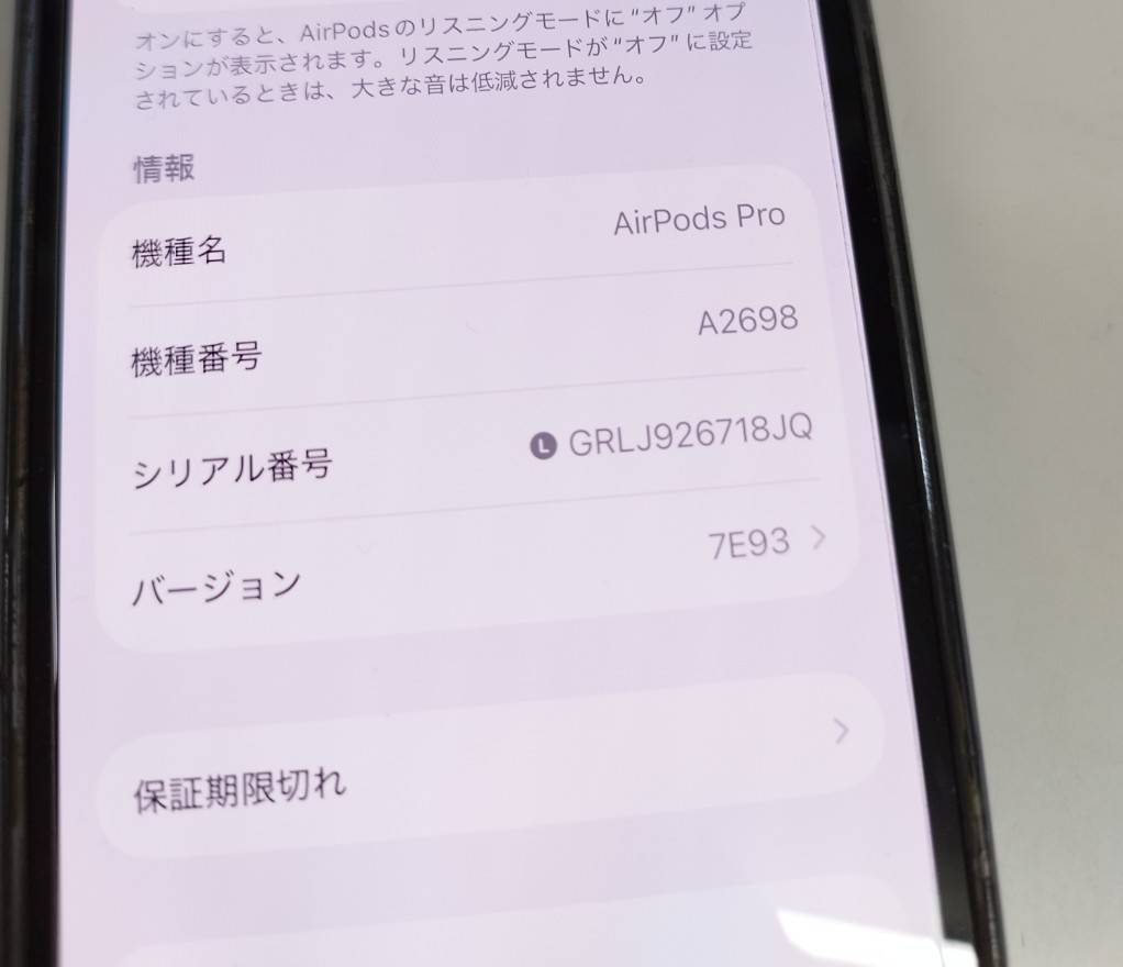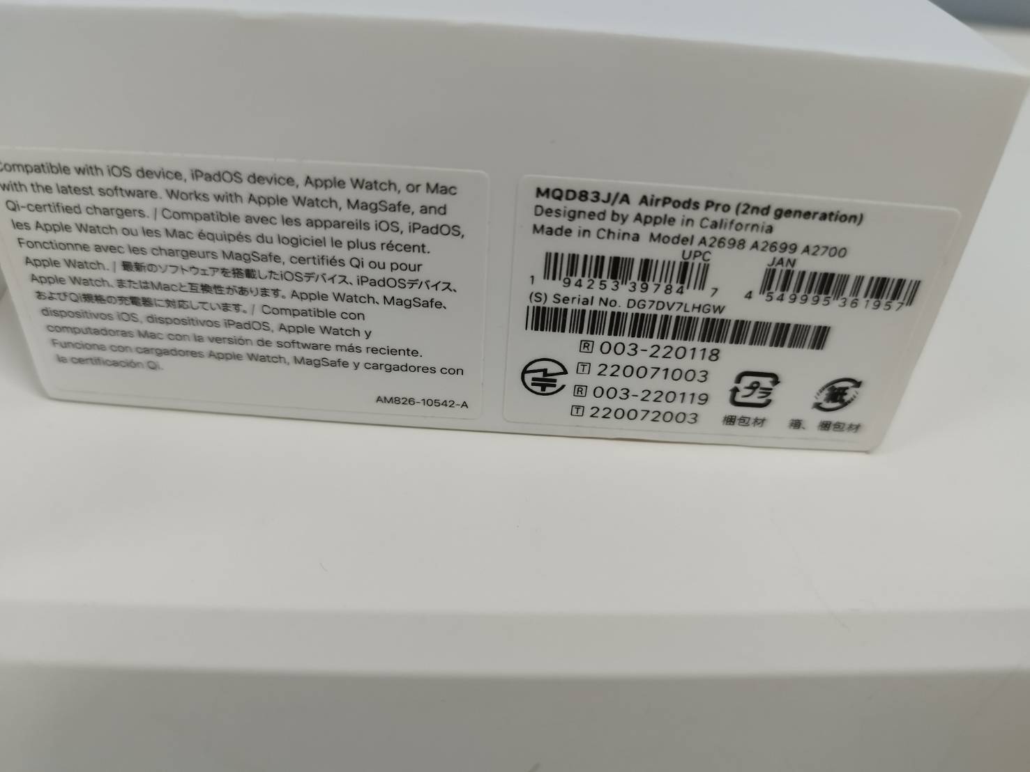 【良品】Apple AirPods Pro 第2世代/A2698,A2699,A2700/ワイヤレスイヤホン〈MQD83J/A〉