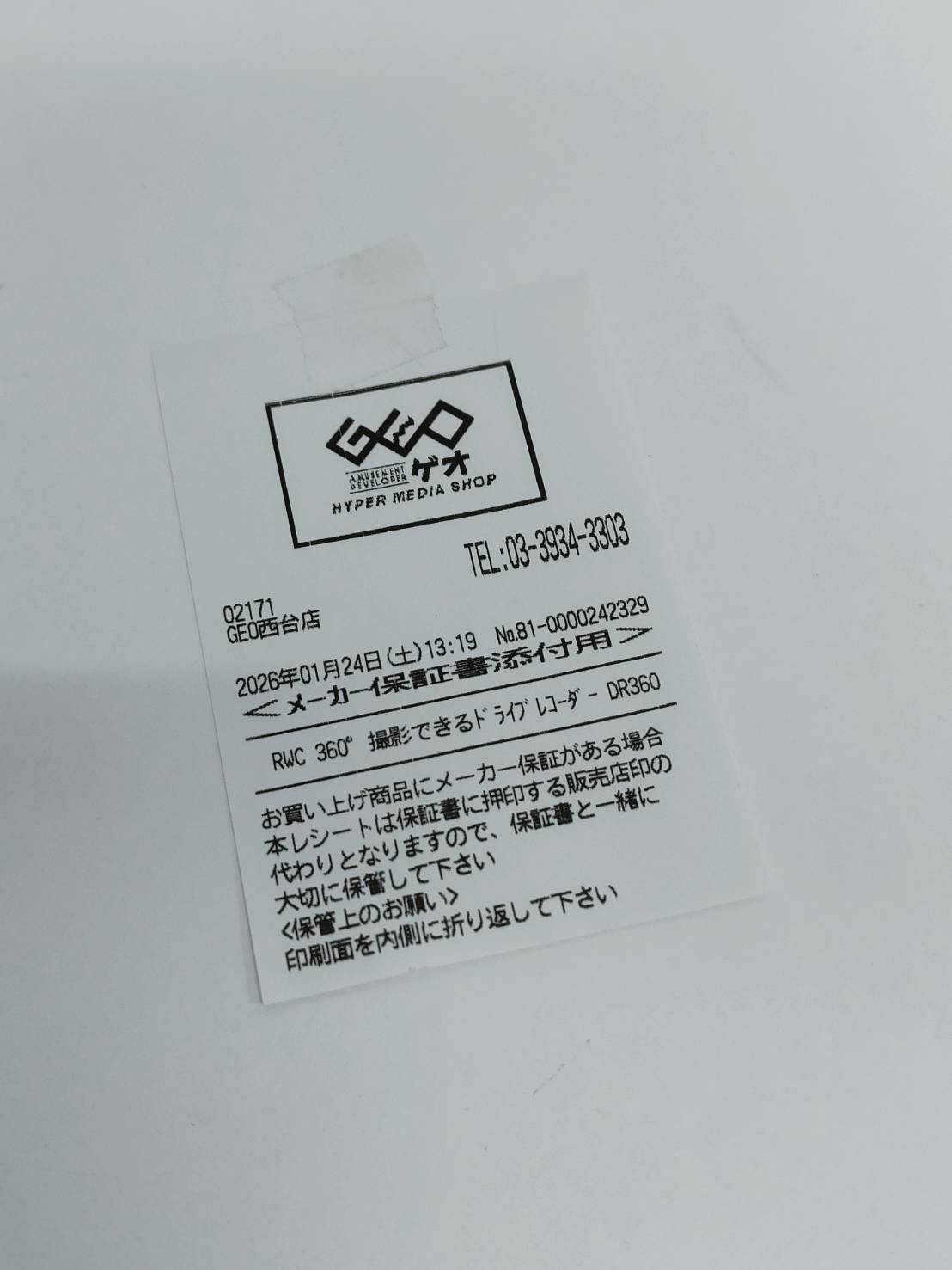 ※保証書添付用レシートあります。(購入日:2026年1月24日)