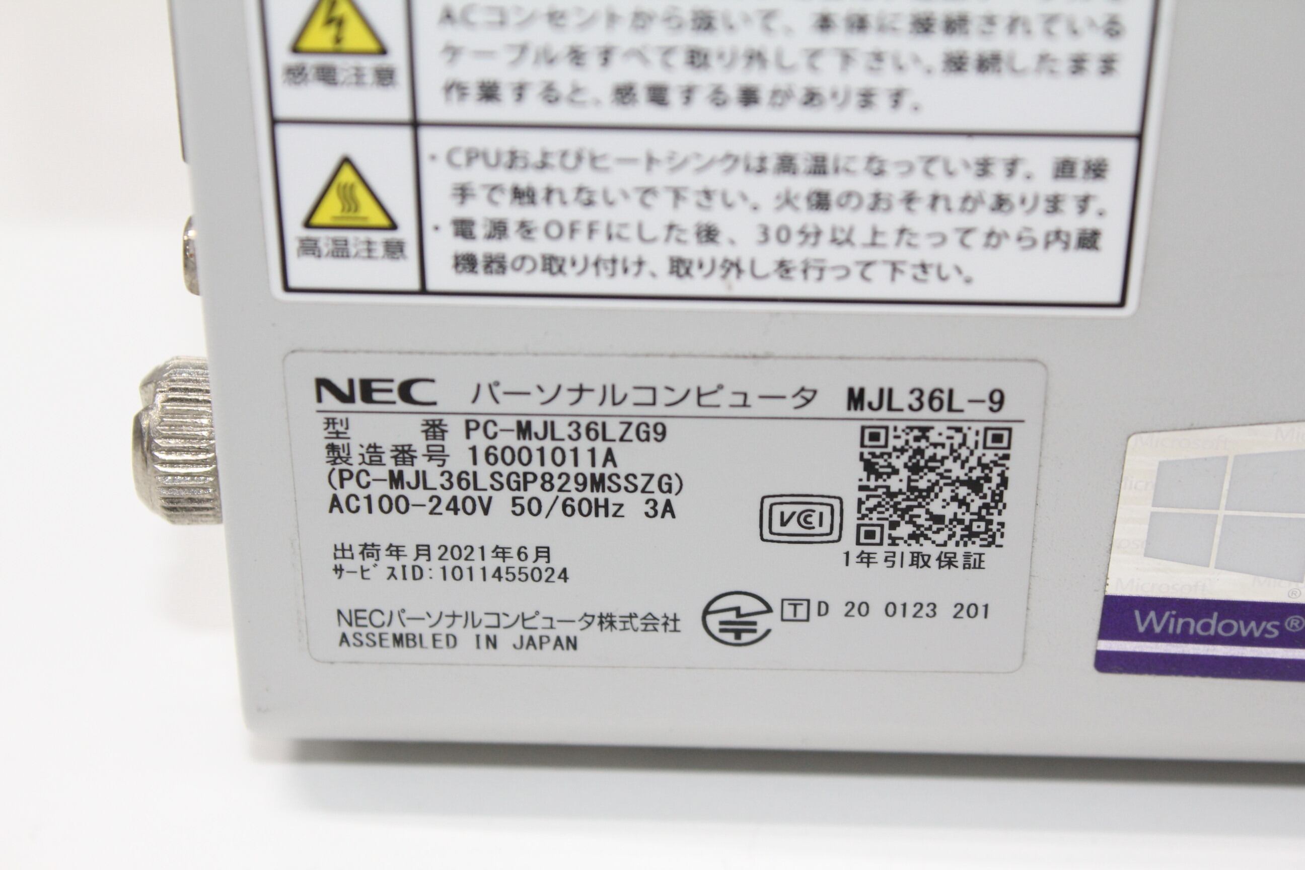 ・型番:PC-MJL36LZG9