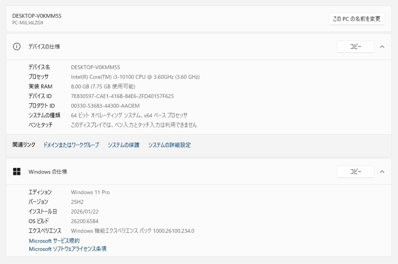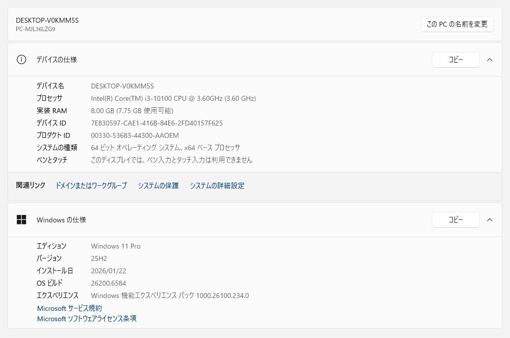 ・OS:Windows11 Pro/25H2(ライセンス認証・Windows update済)
