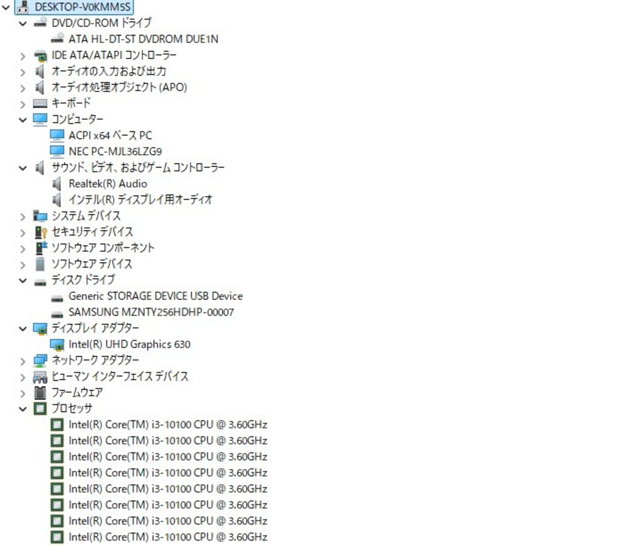・CPU:Intel Core i3-10100 3.60GHz(3.60GHz)