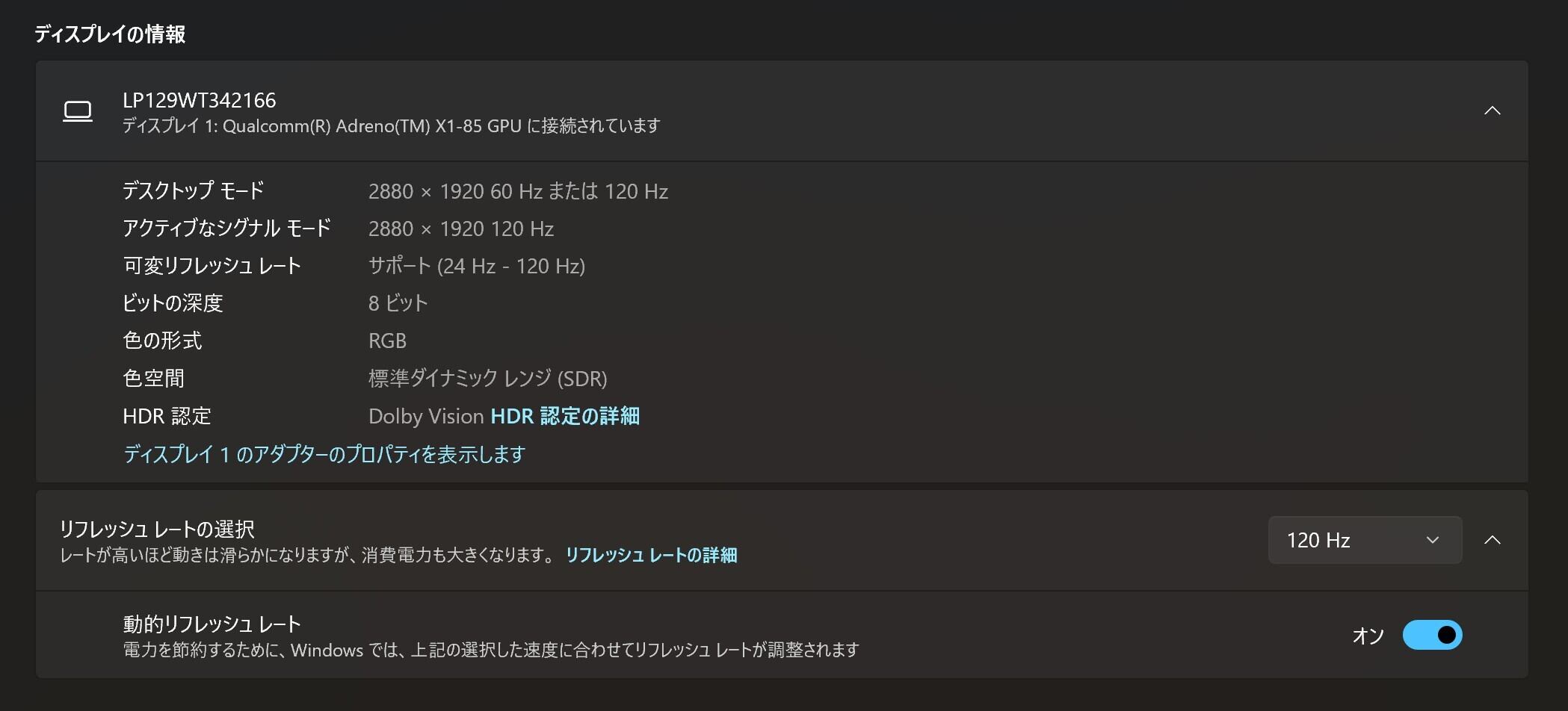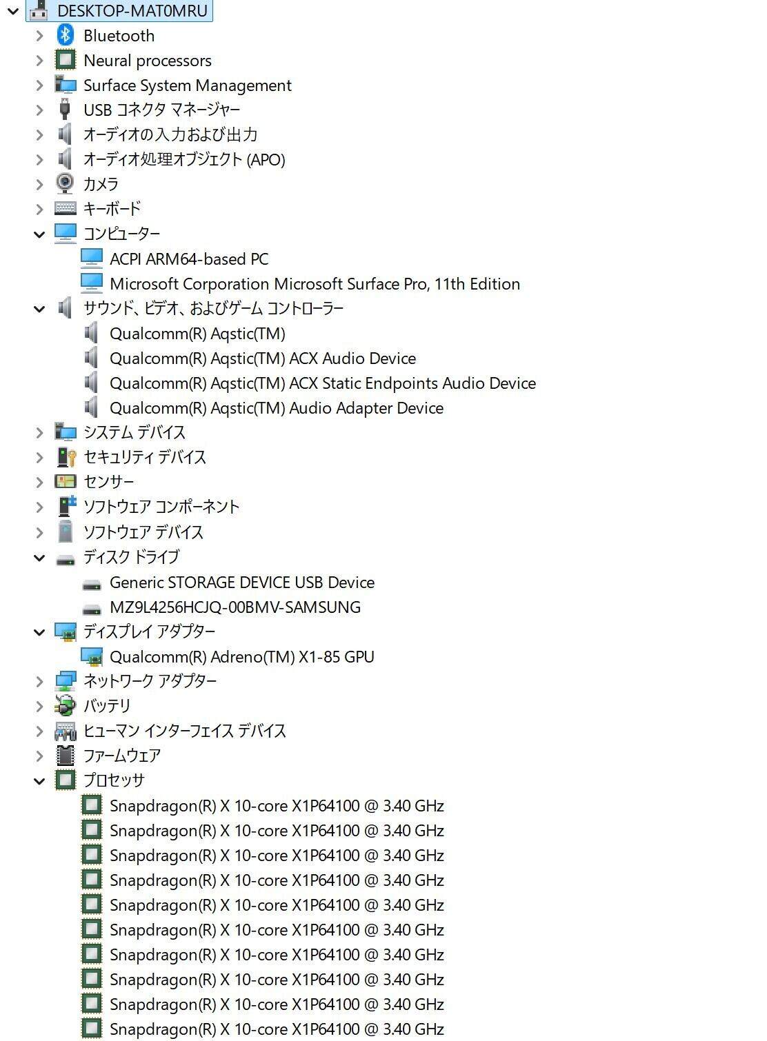 CPU:Snapdragon X 10コア X1P64100 3.40 GHz ( 3.42 GHz)