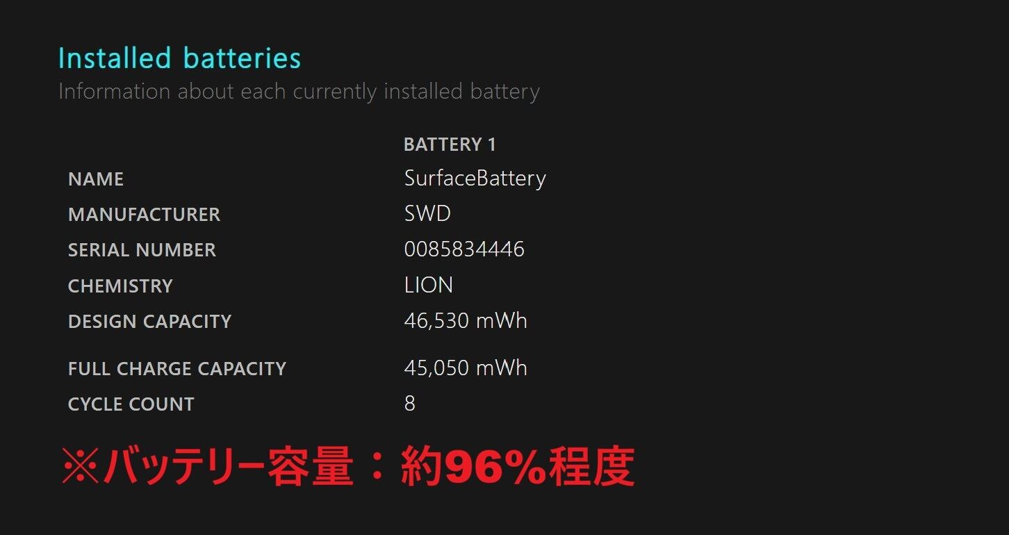 バッテリー状態:画像をご参考ください(※バッテリーは消耗品のため、保証致しかねます。またバッテリー状態はあくまで参考値のため、実際の稼働時間を保証するものではございません。)
