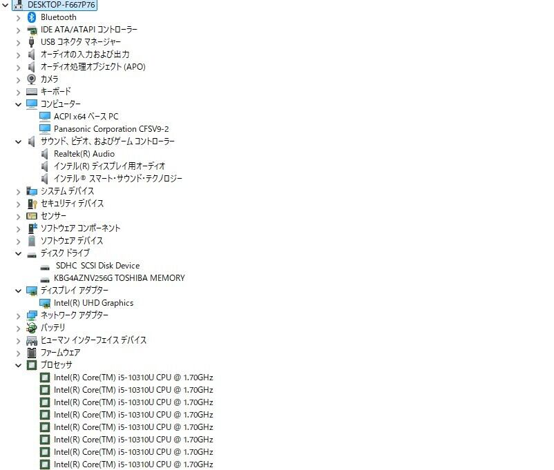 ・CPU:Intel Core i5-10310U 1.70GHz(2.21GHz)