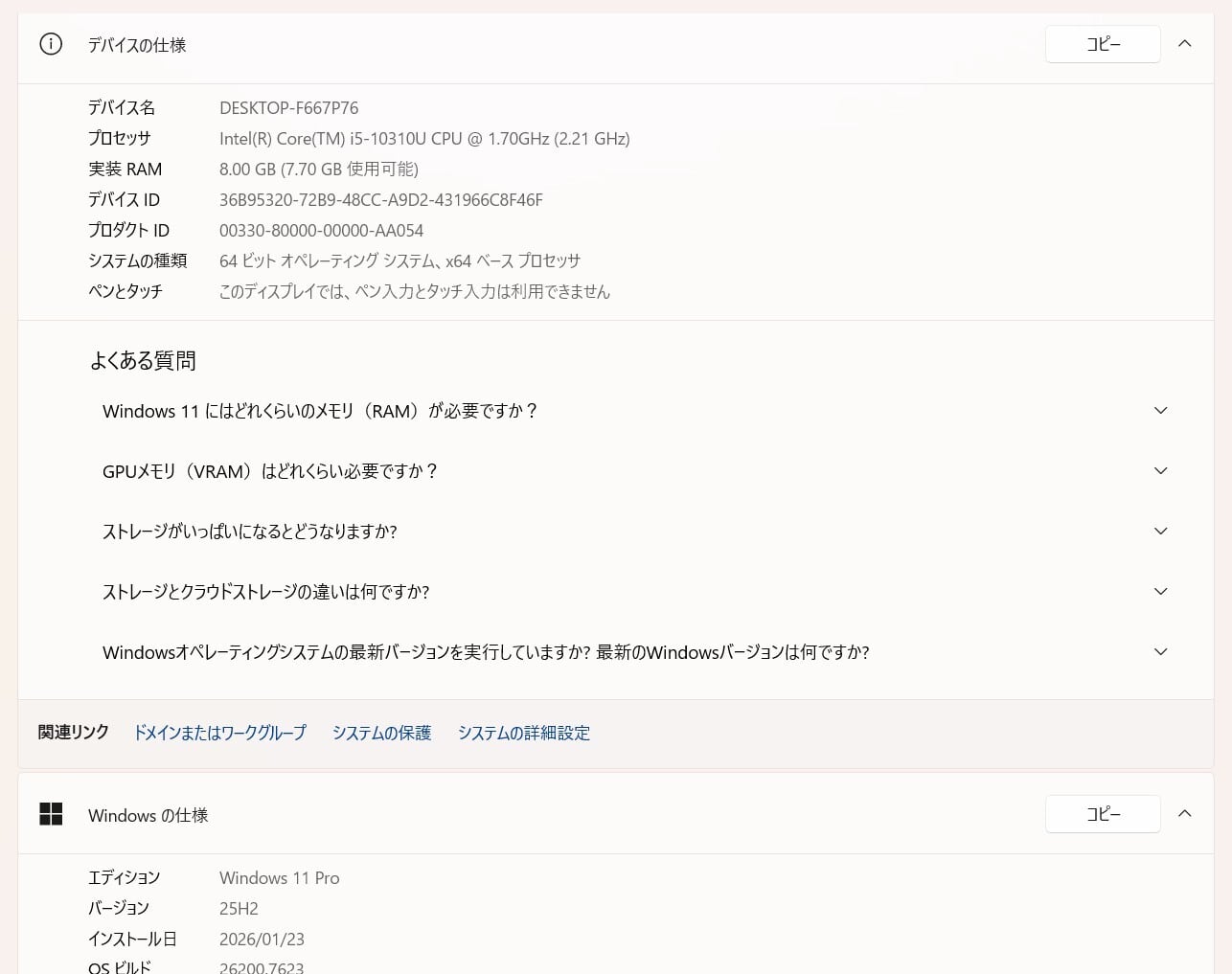 ・OS:Windows11 Pro/25H2(ライセンス認証・Windows update済)