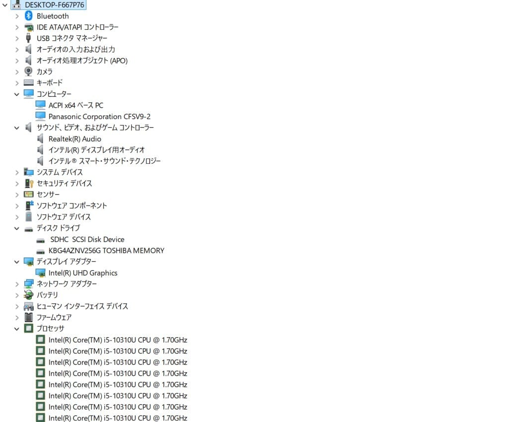 ・CPU:Intel Core i5-10310U 1.70GHz(2.21GHz)
