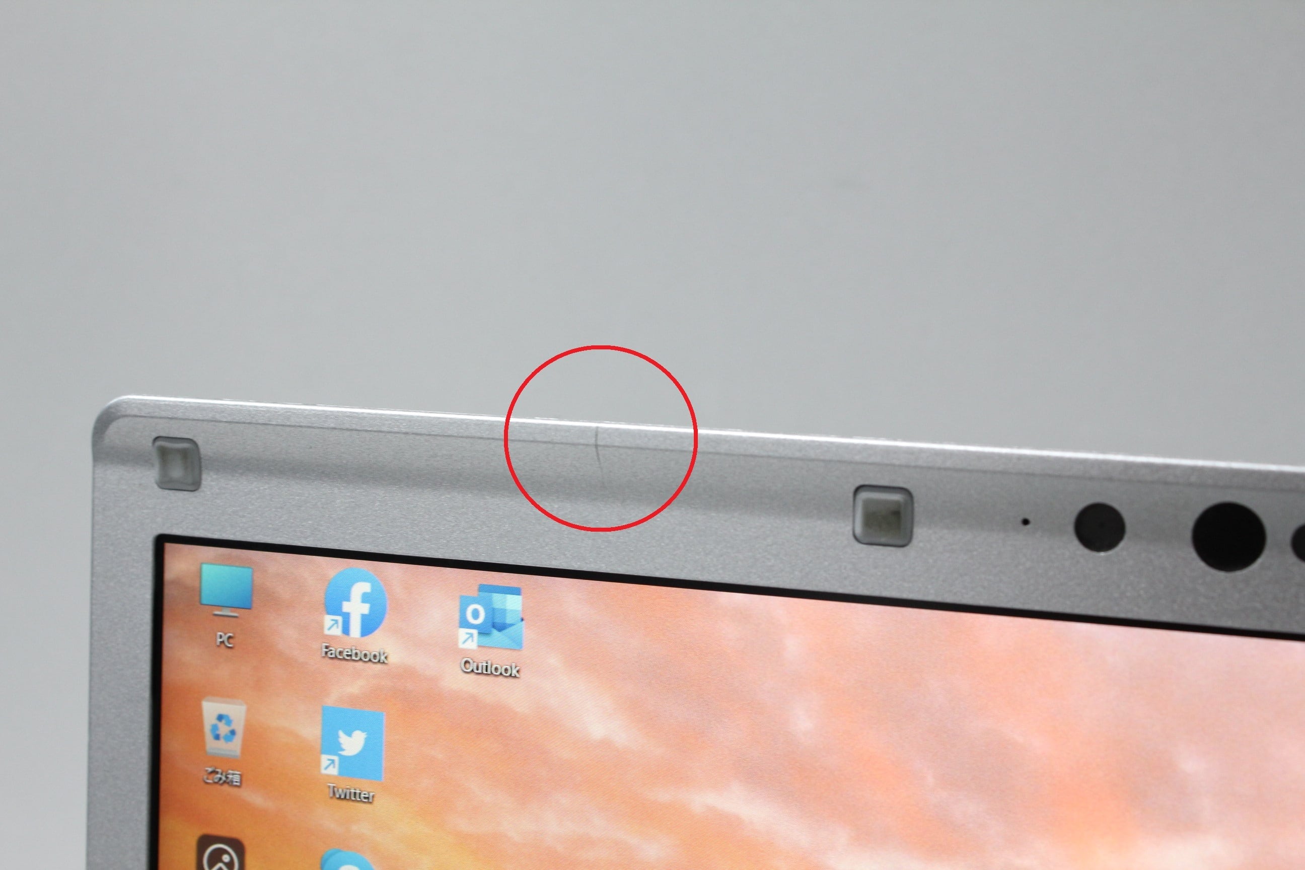 画面の外枠(ベゼル)に1か所、亀裂があります(使用・表示への影響なし)