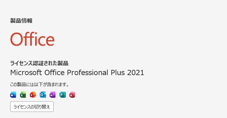 ・Office Professional Plus 2021 ライセンス認証済み(プロダクトキーなどは付属しません)