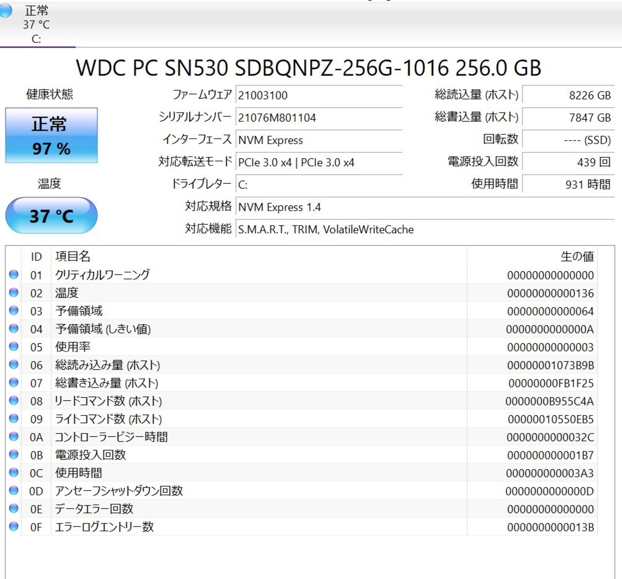 ・ストレージ:SSD 256GB
