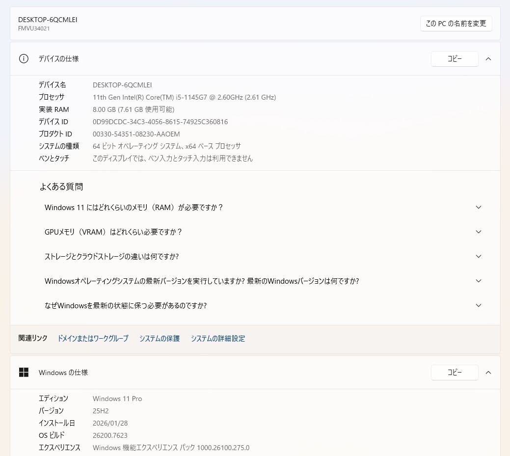 ・OS:Windows11 Pro/25H2(ライセンス認証・Windows update済)