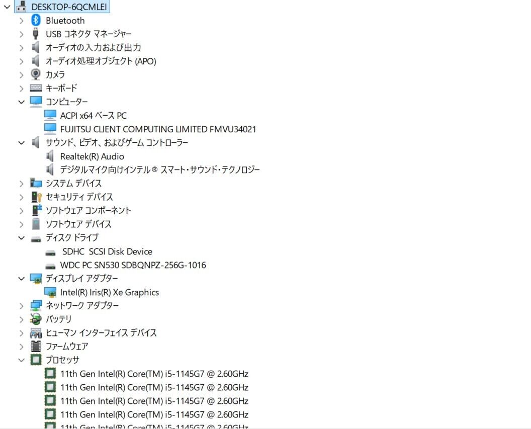 ・CPU:Intel Core i5-1145G7 2.60GHz(2.61GHz)