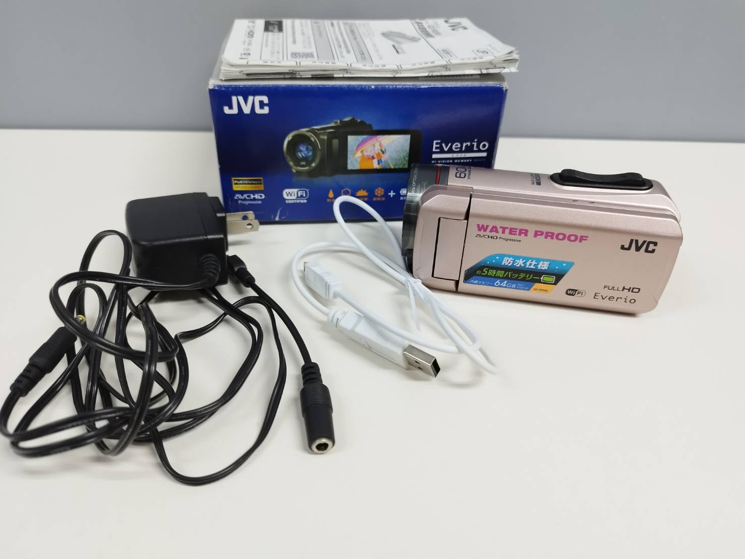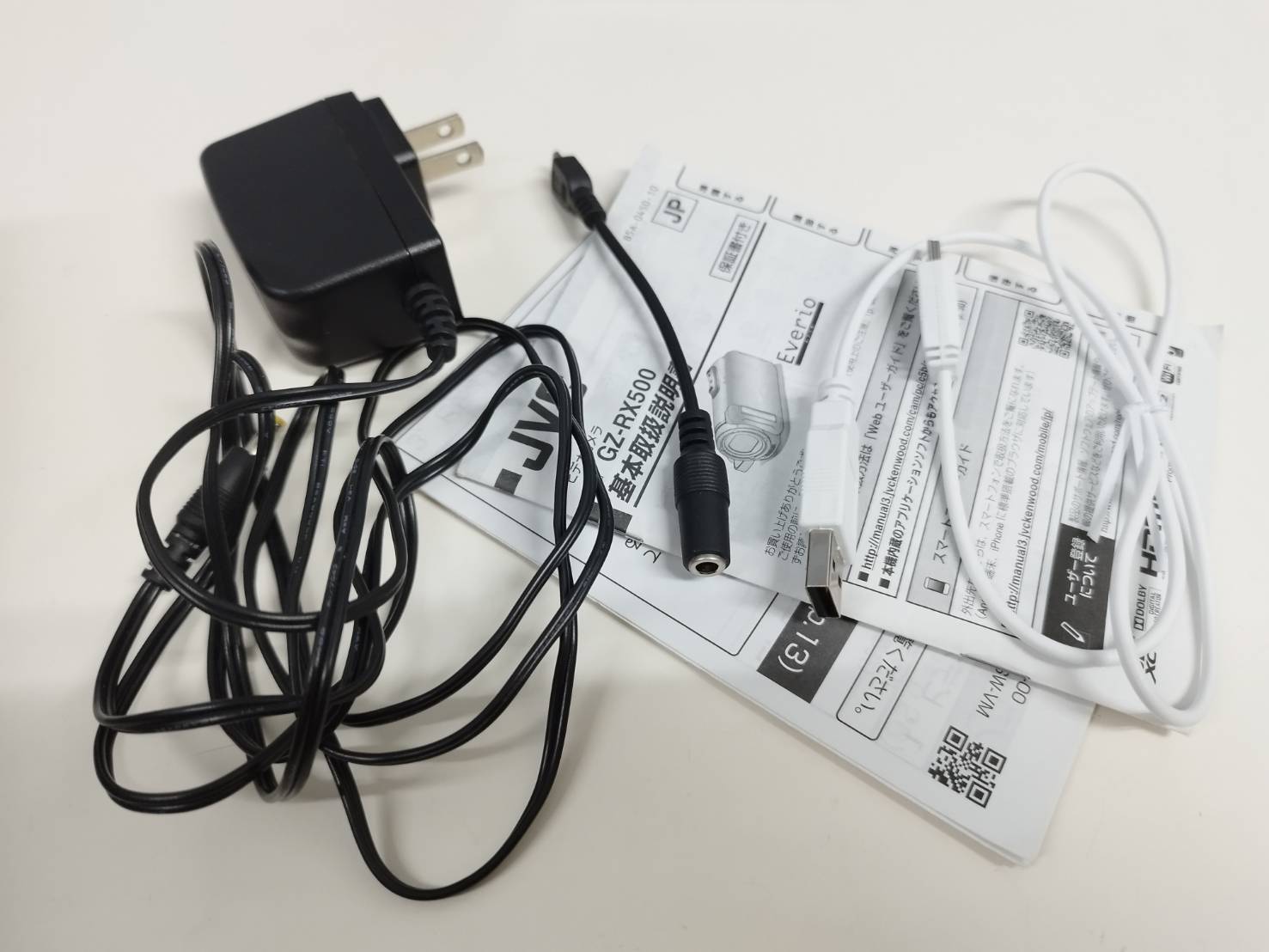 内容物:本体、ACアダプター、USBケーブル、印刷物、外箱(画像1枚目に写っているもの)