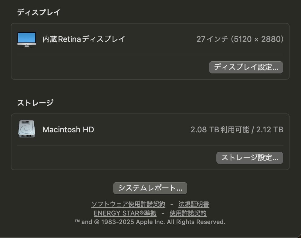 ・ディスプレイ:27インチ Retina 5Kディスプレイ(5,120 x 2,880)