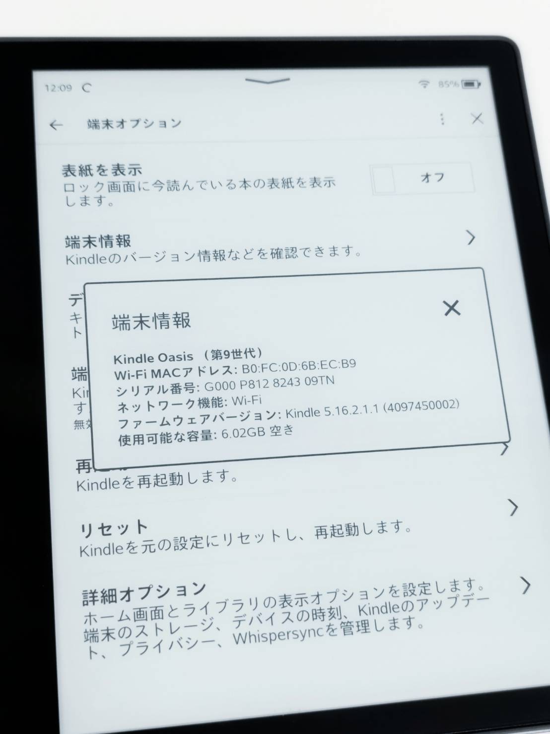 【良品】Kindle Oasis 第9世代/Wi-Fi/8GB/CW24WI