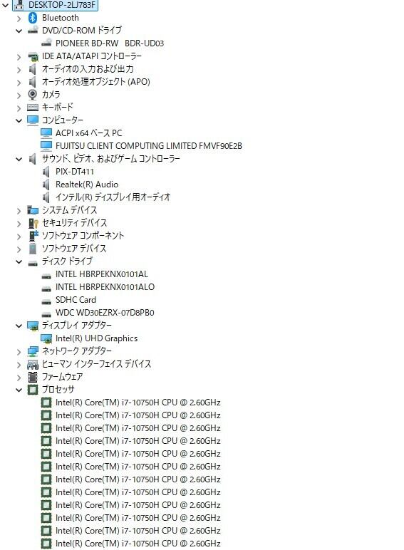 ・CPU:Intel Core i7-10750H 2.60GHz(2.60GHz)