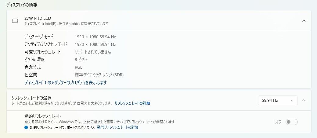 ・ディスプレイ:27インチ(1,920 × 1,080)