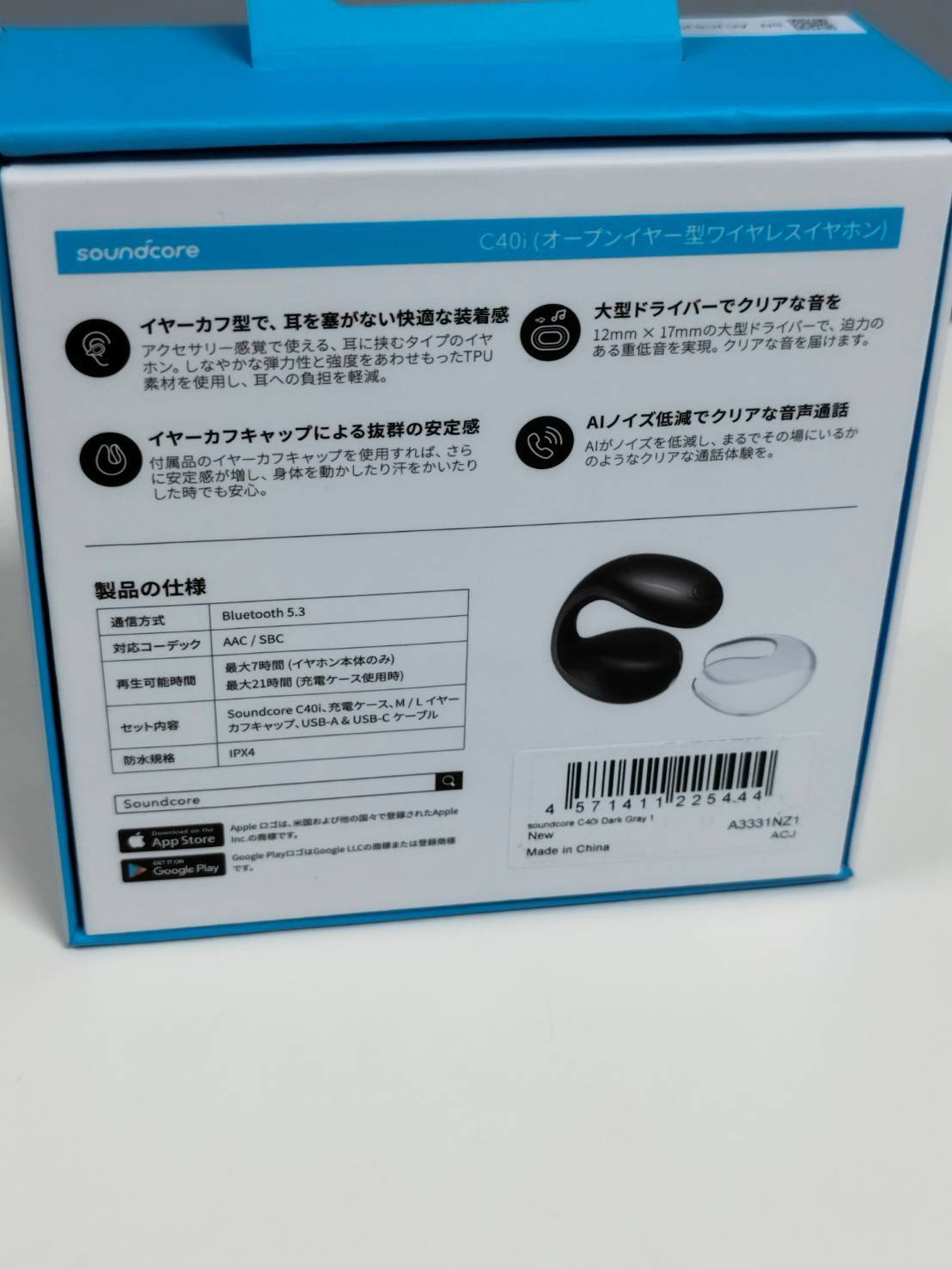 【美品】Soundcore C40i/A3331/オープンイヤー型ワイヤレスイヤホン/ダークグレー