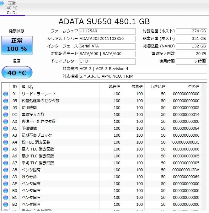 ・ストレージ:SSD 480GB