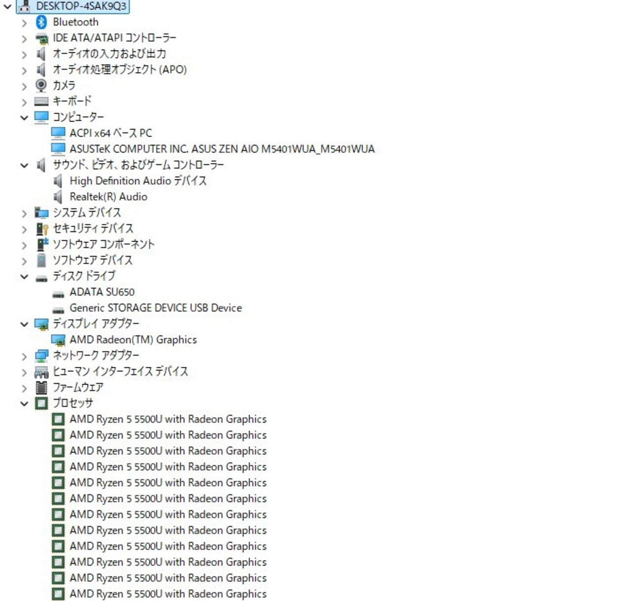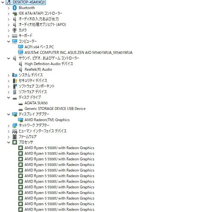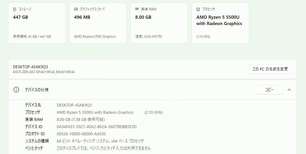 ・CPU:AMD Ryzen 5 5400U (2.10GHz)