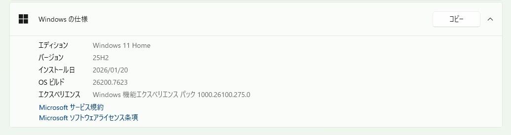 ・OS:Windows11 Home/25H2(ライセンス認証・Windows update済)