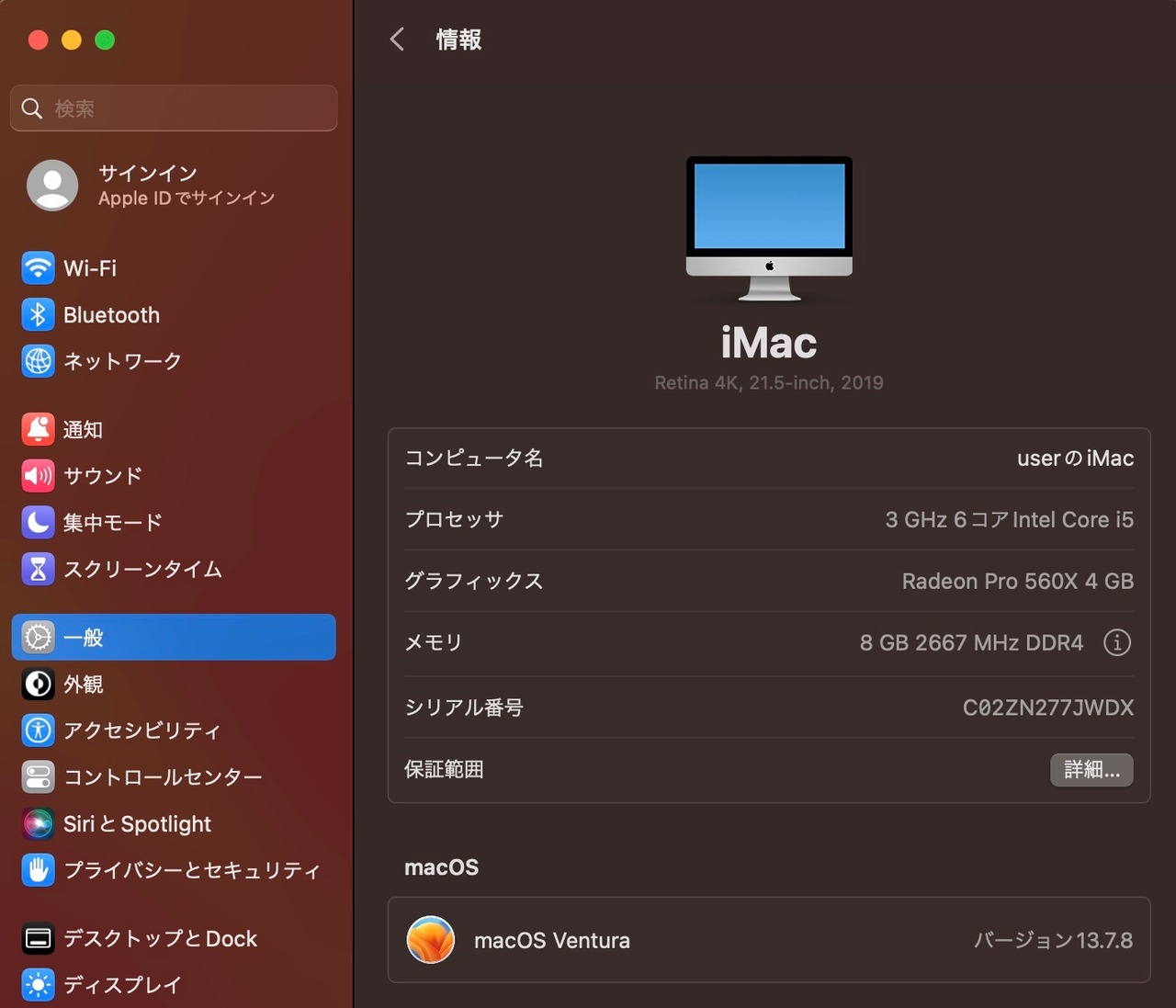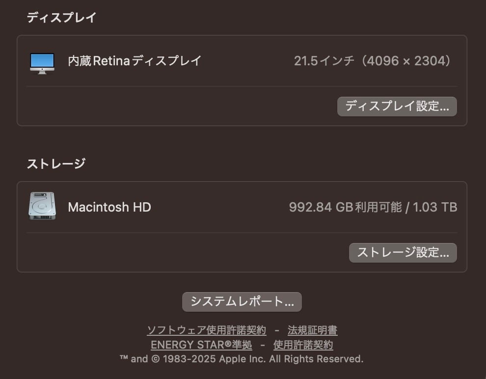 ・ディスプレイ:21.5インチ Retina 4Kディスプレイ(4,096 x 2,304)