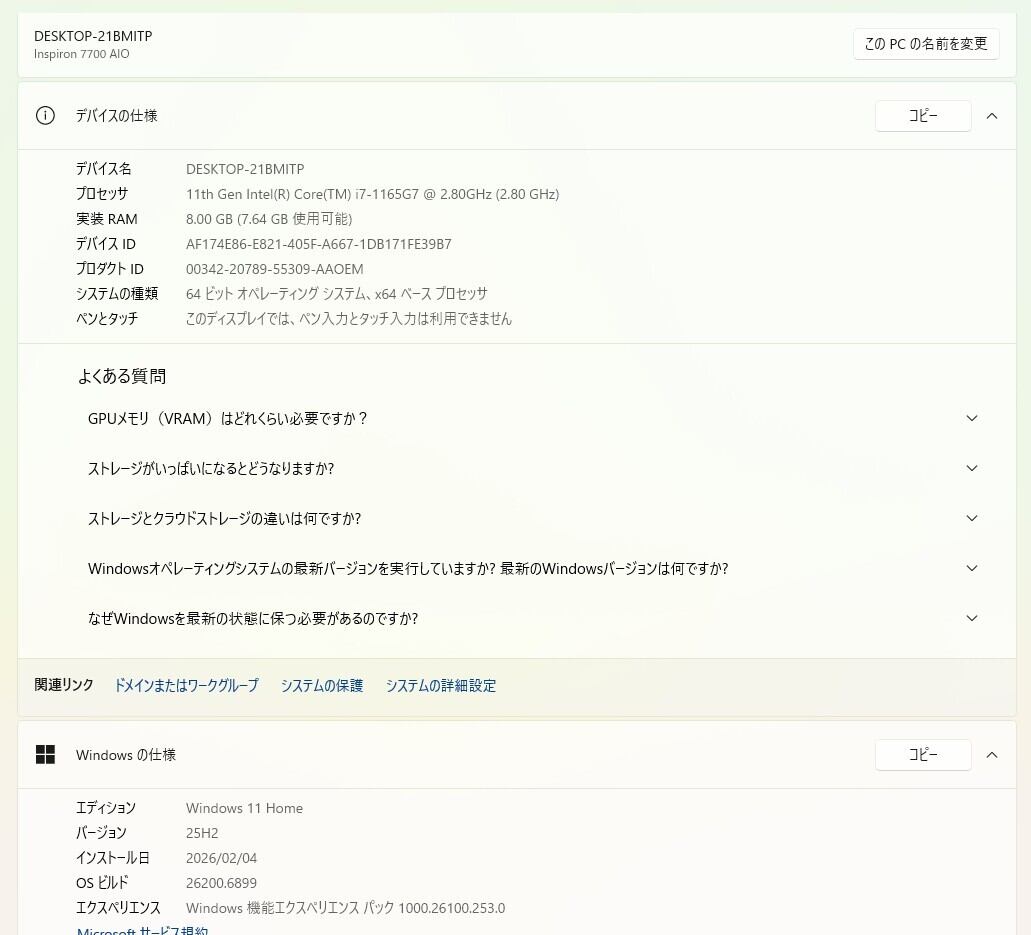 ・OS:Windows11 Home/25H2(ライセンス認証・Windows update済)