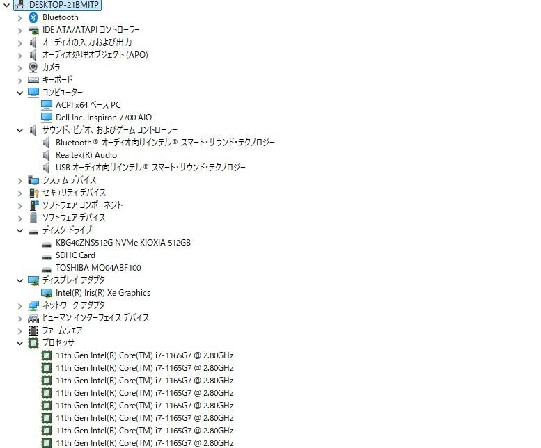 ・CPU:Intel Core i7-1165G7 2.80GHz(2.80GHz)