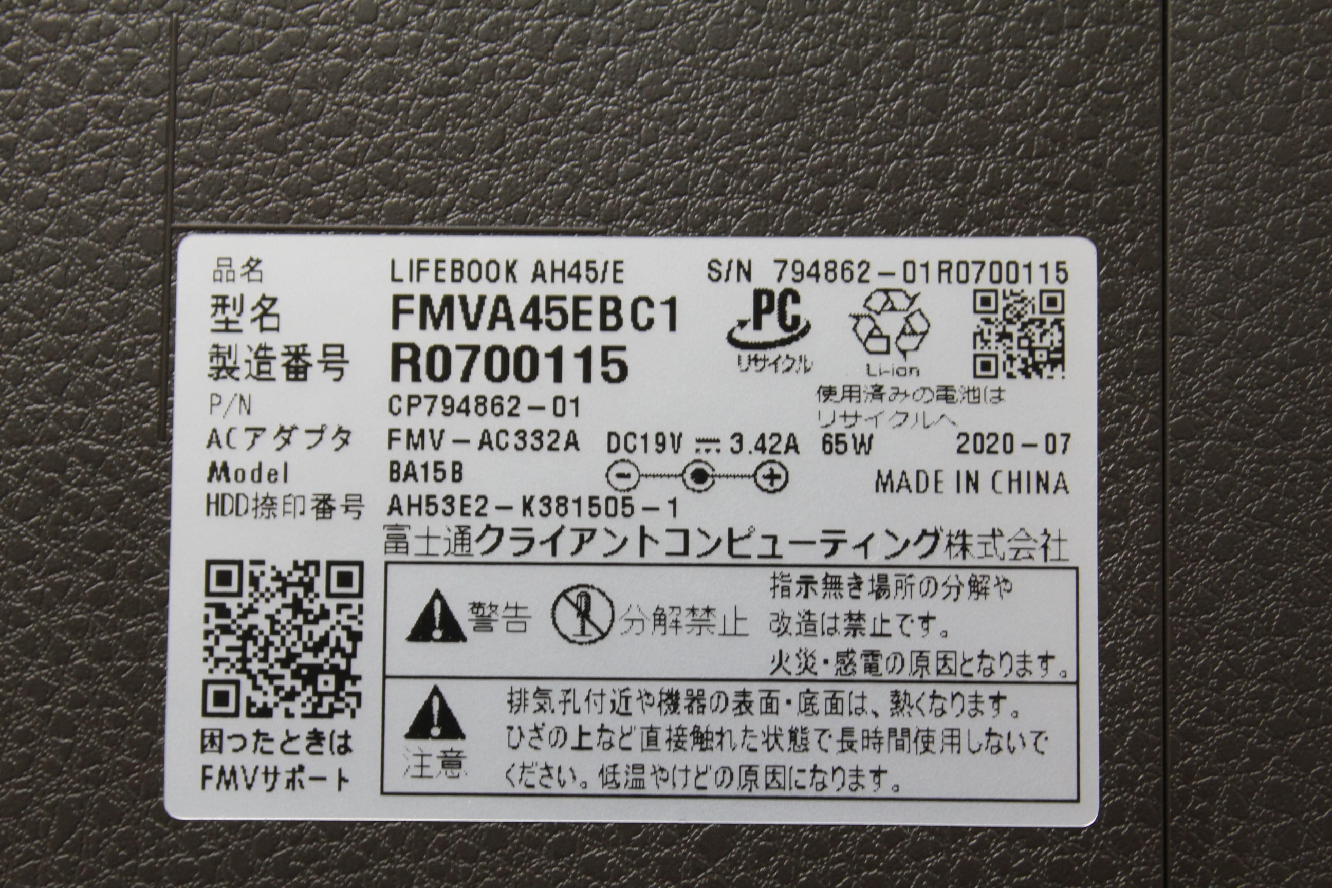 ・型番:. FMVA45EBC1