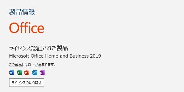 ・Office Home and Business 2019 ライセンス認証済み(プロダクトキーなどは付属しません)
